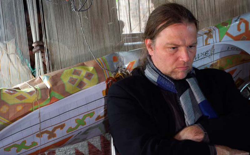 The concept artist and composer grew up in the quiet town of Oppenau in the Black Forest, Germany, and it was not necessarily to be expected that one day he would develop a new philosophy of carpet weaving in the Indian holy city of Varanasi. After finishing school, he studied politics and philosophy in the mid-1990s. A focus on international relations and developmental politics acquainted him with the paradigm change away from developmental macro-projects to participatory micro-projects. After his undergraduate studies, his interest in technical images and photography brought him to the academy. Studying at Kassel Art Academy quickly showed that not all ideas could be realized making use of the same artistic form. Roth moved to becoming a concept artist who more and more often looked to collaborate with scientists in order to find answers for how to engage in a manner relevant for today with traditional artistic questions – for instance concerning the perception of space or the meaning of colour. A model Roth has been concerned with for fifteen years is that of so-called cellular automatons. This simple model organism is used in the sciences to describe complex self-organizing systems. Tim Otto Roth has made use of the simple instructions for his work with a project choir, the water organ 'aura calculata' and as the compositional principle for the MaSo carpet, among others.